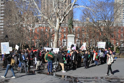 City-As-School students and educators marched to Washington Square Park Thursday.