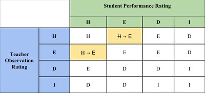 Under the new legislation, evaluations will be are based on two main components: student performance and classroom observations. Teachers can earn a highly effective rating by earning that rating on one component and an effective rating on the second. (Here’s how ratings from the two categories get combined into a single rating in the state’s new matrix.)