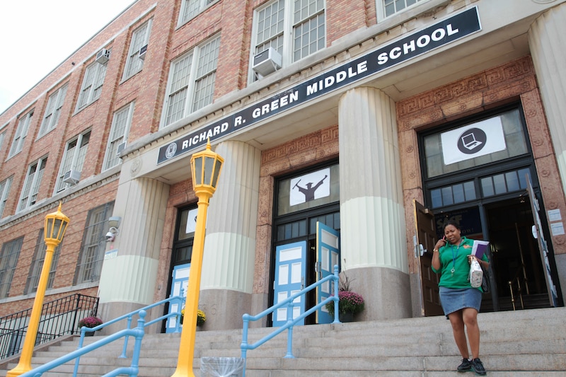 The Richard R. Green campus is a drab, three-story brick building in the northwest Bronx. But this year, its metal fences are adorned with banners for each of the four schools inside and new flowers line the entranceway, where the doors have been painted bright blue and lampposts are now school-bus yellow.