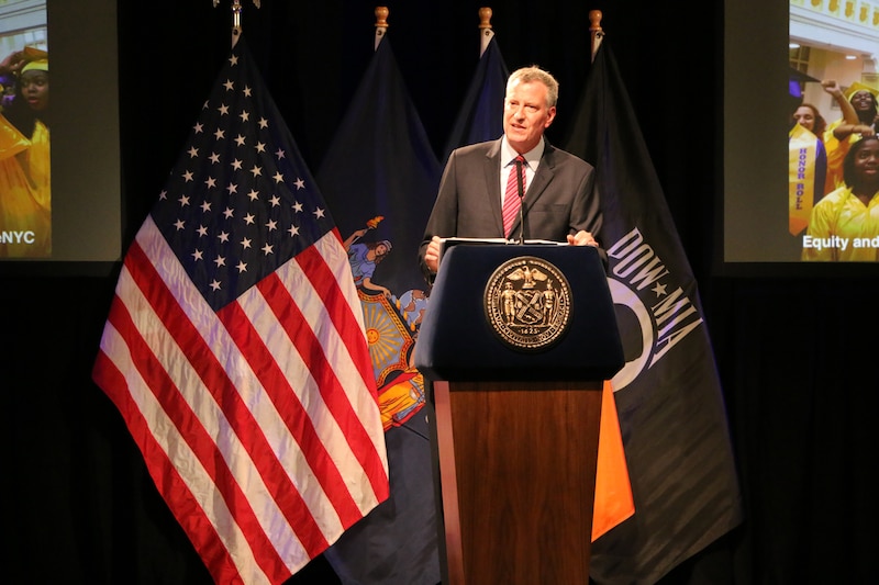 Mayor Bill de Blasio announced new education initiatives for New York City schools at Bronx Latin in September. (Patrick Wall)