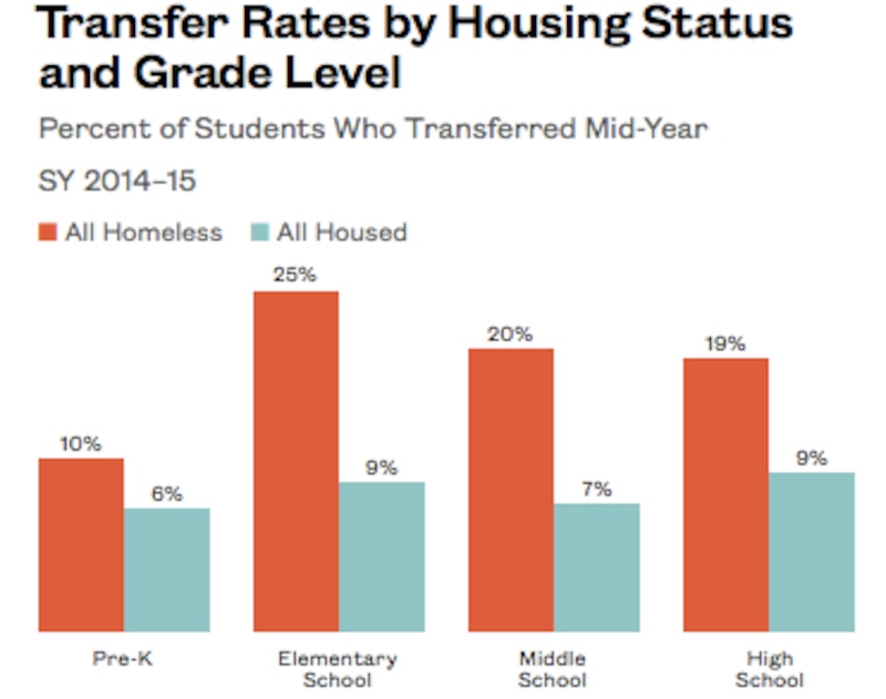 7. Housing instability correlates with instability in school — the homeless student population is much more likely to transfer mid-year.