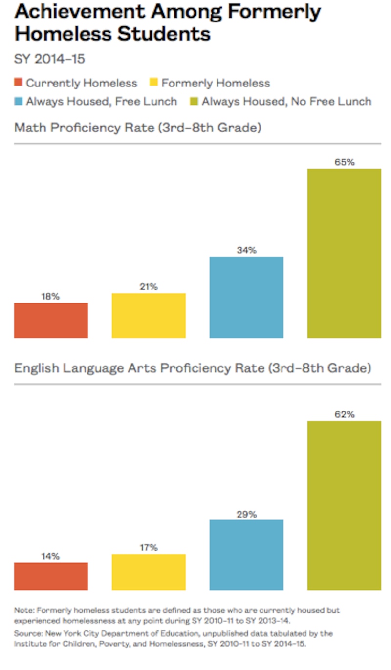 4. Formerly homeless students’ proficiency on state tests is remarkably similar to that of their currently homeless peers, which suggests that unstable housing can affect school performance for years.