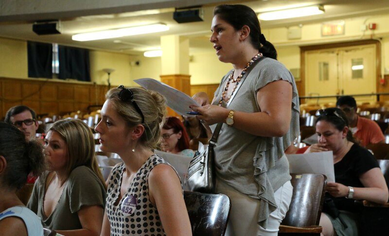 An attendee at Thursday’s meeting questioned an education department official about the plan.