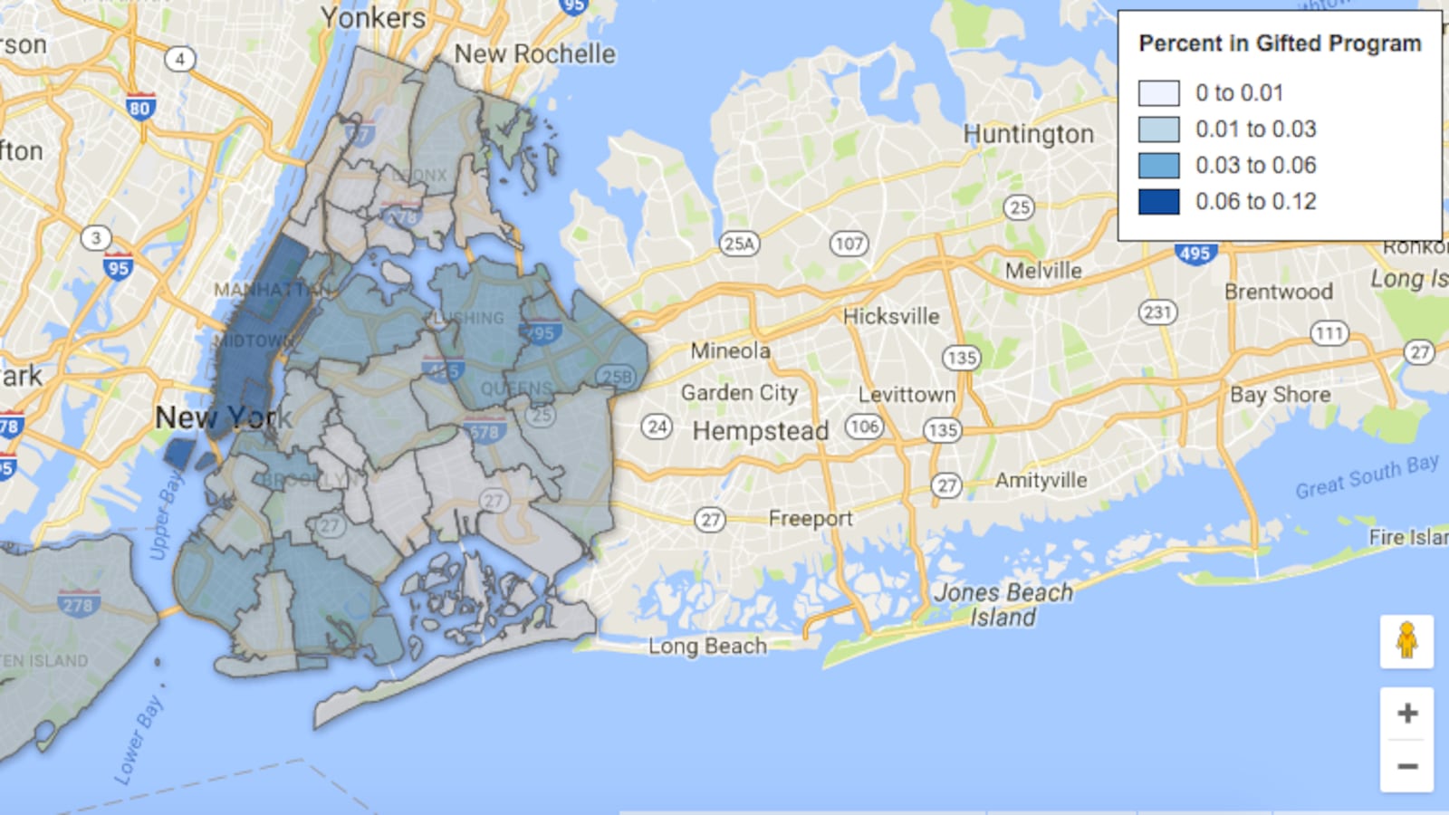Next on the list: District 2, which stretches from Lower Manhattan to the Upper East Side, and District 3, which includes the Upper West Side and part of Harlem. More than seven percent of students there are in gifted programs.