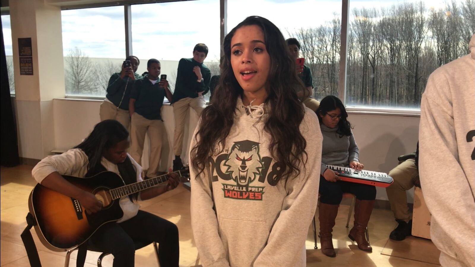 The song, uploaded to YouTube Wednesday morning, features John W. Lavelle Preparatory Charter School students in a soaring anti-gun counterpoint, led by seniors Jerramiah Jean-Baptiste and Aeva Soler.