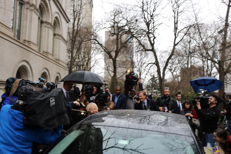 “Amazing, amazing job. She’s got a lot to be proud of,” de Blasio said as the car drove off.