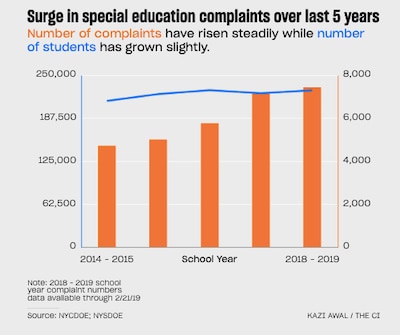 The number of special education students has increased by nearly 20,000 since the 2013-’14 school year, to roughly 224,000 in 2017-18, according to DOE officials.