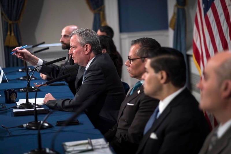 Meanwhile, Mayor Bill de Blasio once again signaled that the city’s public schools would continue to stay open, arguing that many low-income families depend on them.