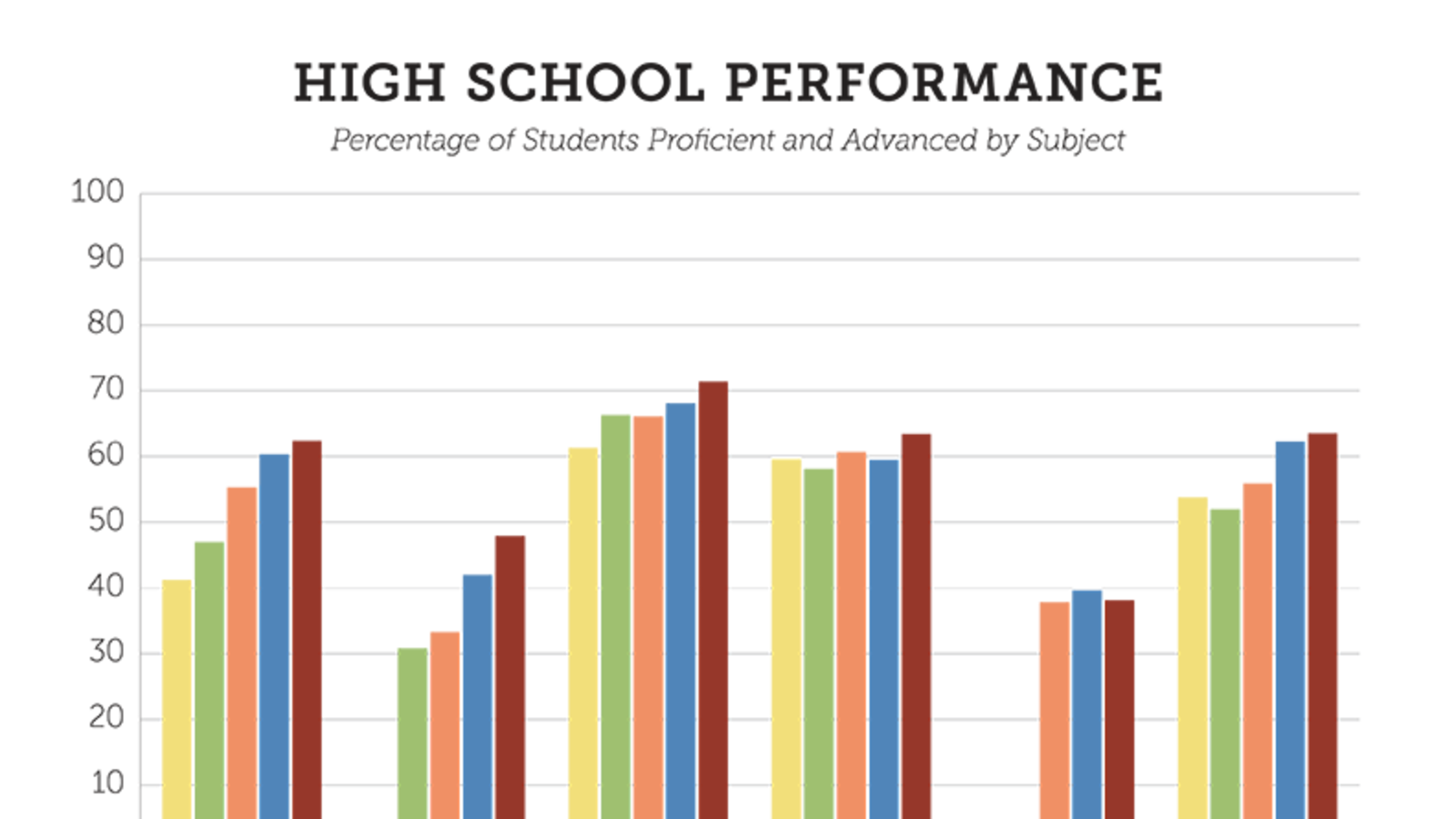 Some of the biggest gains highlighted were in math, where 19 percent more students scored proficient in Algebra II than in 2011 when the test was first administered. More students in grades 3 to 8 scored proficient than last year, but the pace of that growth has slowed. Around 100,000 more students across all grade levels are proficient in math in Tennessee than in 2010.