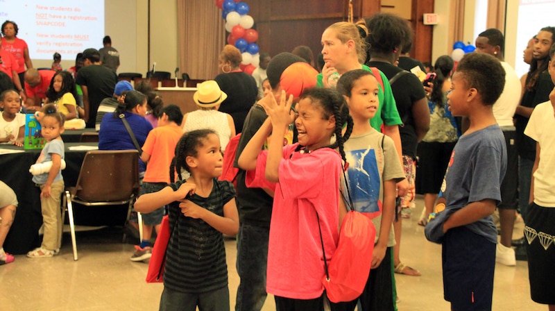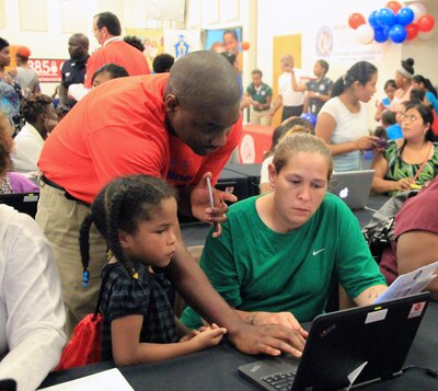 In addition to registration assistance, the kickoff event featured games for the kids, free Chick-fil-A dinners and a showcase of other district services. Children who came with their parents were able to receive a free physical, shoot basketball goals to win prizes, and learn about healthy eating from the district’s health services.