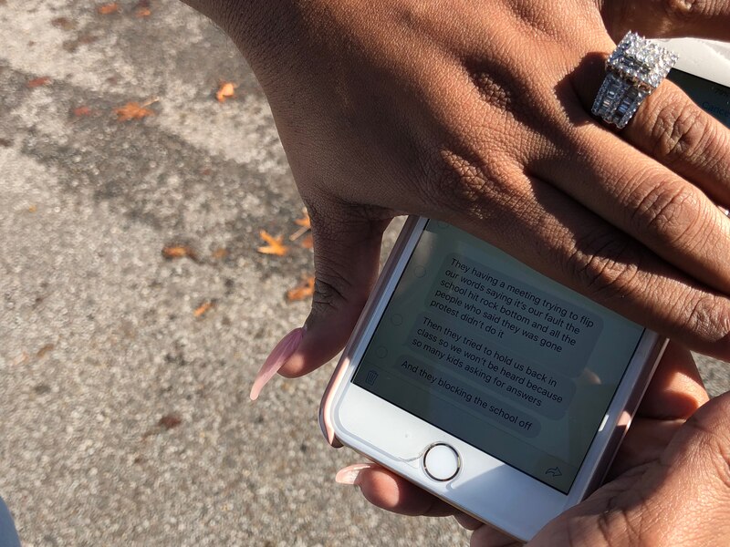 Nicole Smith came to the school after her daughter texted her that students were being held in class, “so we won’t be heard because so many kids asking for answers.” If things don’t change soon, she plans to withdraw her daughter, a senior, from the school.
