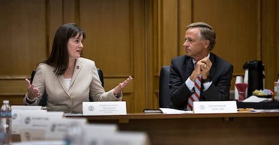 Haslam then turned to McQueen, a native of Clarksville, Tenn., former teacher, and respected dean of education at Nashville’s Lipscomb University.