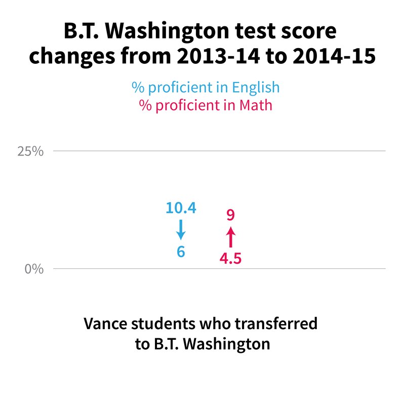 Vance Middle School students who transferred to B.T. Washington High School after their school closed in 2014 saw their math scores go up and reading scores go down.