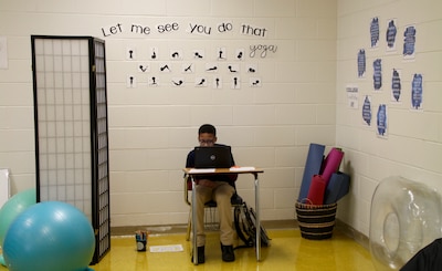 Kevin said that at his previous schools, in-school-suspension was held in drafty rooms where “we had to copy words out of a dictionary, just so we’d have something to do. I wasn’t learning how to do better, how to treat people better.”
