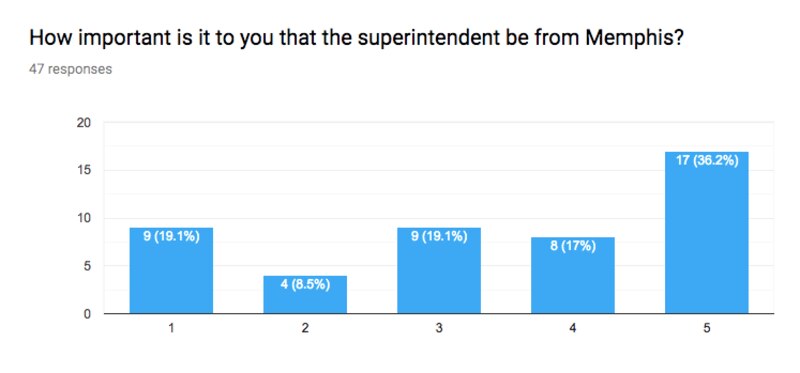 Hopson and Ray, the interim superintendent, are both native Memphians. About 36 percent of respondents said it was very important to them that a Memphian take the helm, while 19 percent said it wasn’t at all important.
