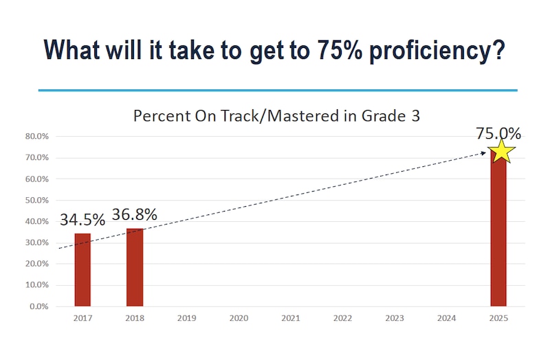 With a little more than a third of its third-graders reading on grade level, the state has a huge hill to climb to get to 75% by 2025 — a goal set in 2016 by former Gov. Bill Haslam’s administration and reaffirmed this year by Gov. Bill Lee.