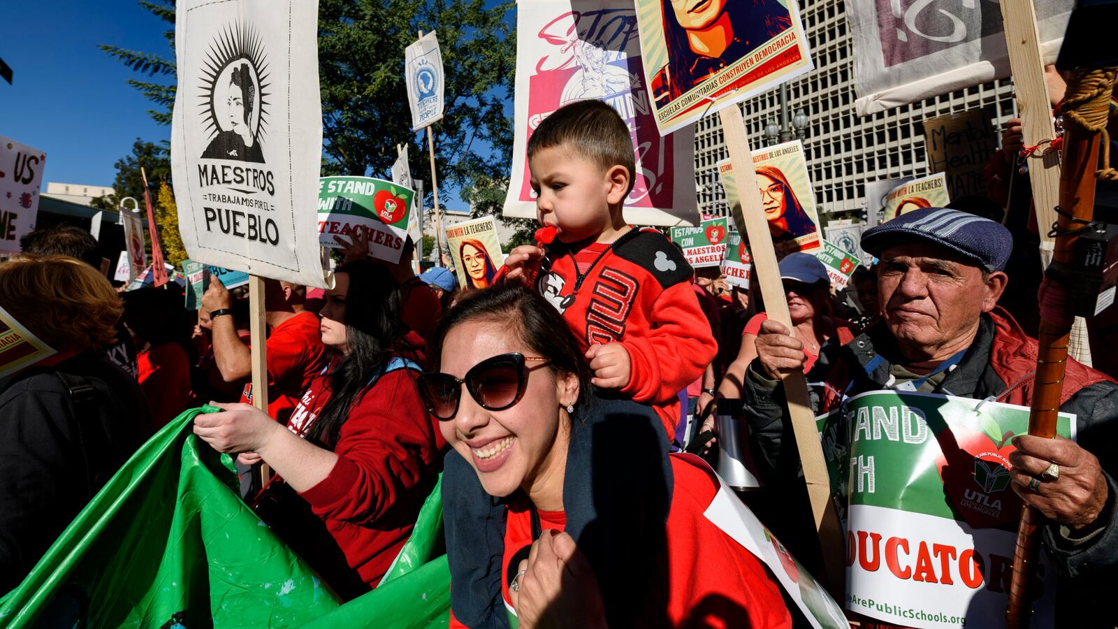 Pat Lingard, teaches kindergarten at Castlebay Lane Charter School, a district-affiliated charter school in Porter Ranch: For me, there [are] two aspects that are most important in this negotiation. The first is to make sure our schools are fully funded. They deserve a nurse and a psychologist and lower class sizes and aides in the classroom and a librarian in the library and a music teacher and an art teacher. Those are all fundamental components to a successful education.