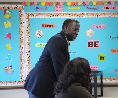 “We have to create a committee that as we make decisions we hear from you,” Griffin told Jolly, who sat directly next to her in a spacious classroom at Whitney Achievement. “Even though your school has a principal, I am responsible for the whole district, and you matter. You’re the person we have to listen to, and nothing is too small or too large.”