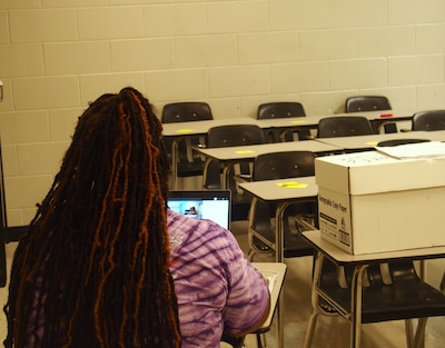 Fleming said the internet at school is faster and more reliable than at most homes and it’s easier for her to troubleshoot problems with her staff. As her administrators view virtual classes on a large monitor, Fleming keeps in touch via hand-held radio and serves as a “runner” to help teachers if they get stuck.