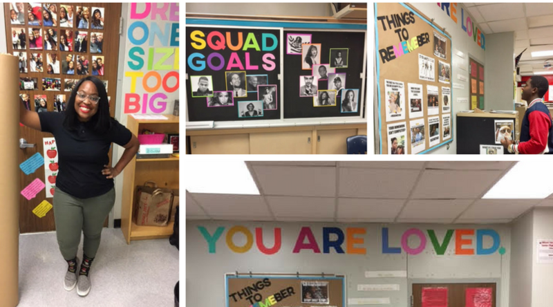 “My classroom environment invites all of my students to constantly be in a state of celebration and self-empowerment at all points of the learning process. With inspirational quotes, culturally relevant images, and an explosion of color, my classroom sets the tone for the day every single day as soon as we walk in. It is one of optimism, power, and of course glitter.”