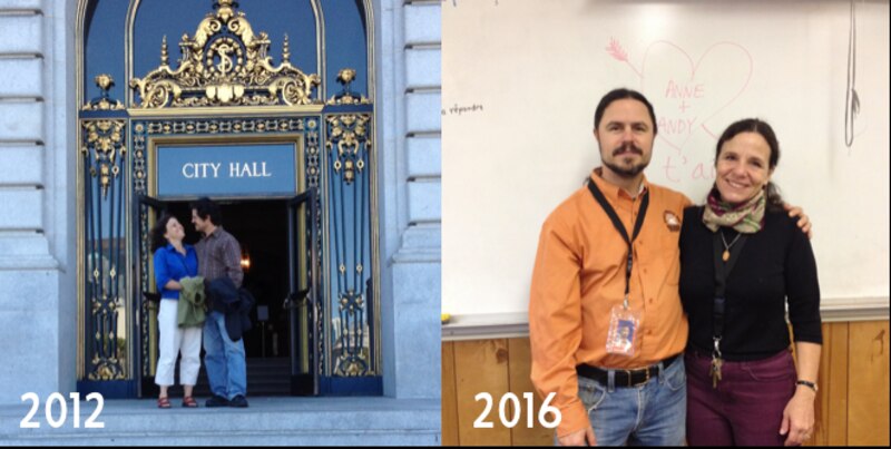 The update: The pair married in 2012, giving Andy “two awesome step-daughters” and, later, a grandchild. Both still teach at Half Moon Bay High School.