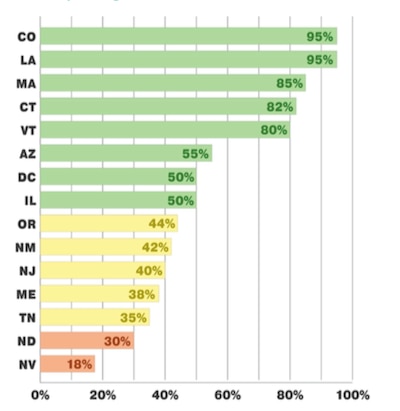 Still, states have interpreted that in different ways. Delaware’s system will base 70 percent of its ratings for elementary and middle schools on state tests. In Louisiana, 75 percent of scores for elementary schools will be determined by state math and English tests and 25 percent will come from science and social studies exams. (Eventually, Louisiana plans to add “access to a well-rounded curriculum” as a measure, though it will only account for 5 percent.)