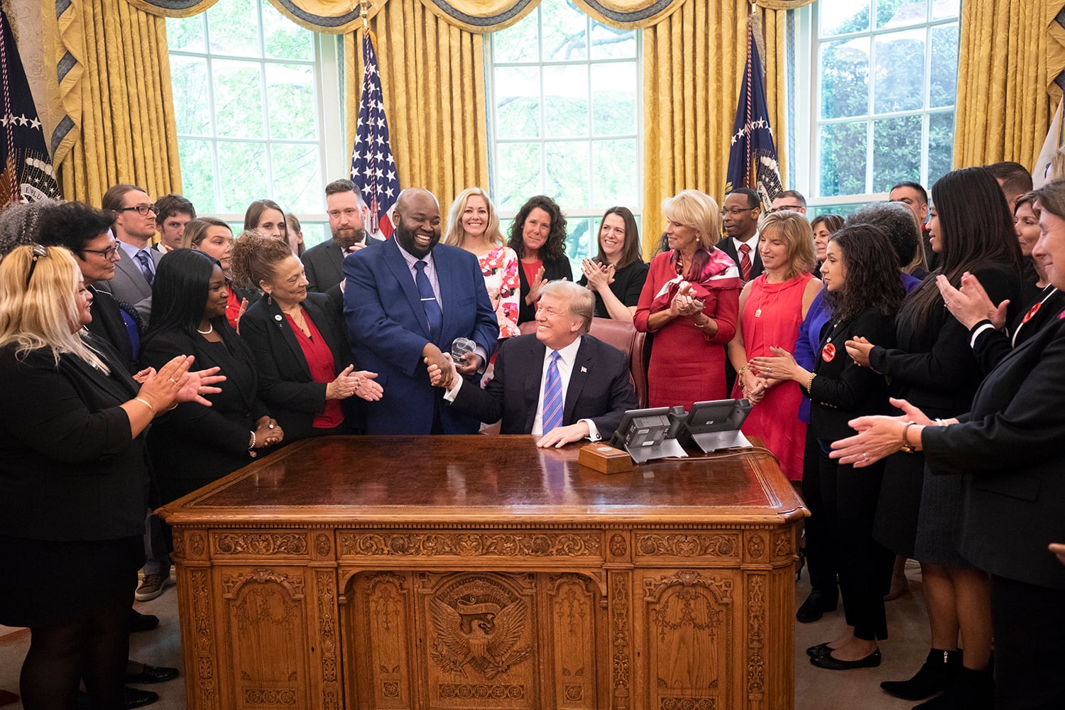 But that didn’t happen for Rodney Robinson, last year’s national teacher of the year. Instead, he received the award from Education Secretary Betsy DeVos, with what was described as a “surprise” meeting with Trump in the Oval Office afterward.