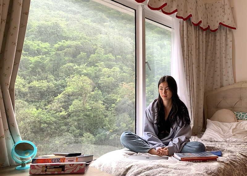 Two weeks later, I was in front of a computer, watching my biology teacher flip through slides. I lay sideways on my bed, camera and microphone off — just like everyone else in my class. My mother doesn’t believe in studying inside the bedroom, so I don’t have a desk.