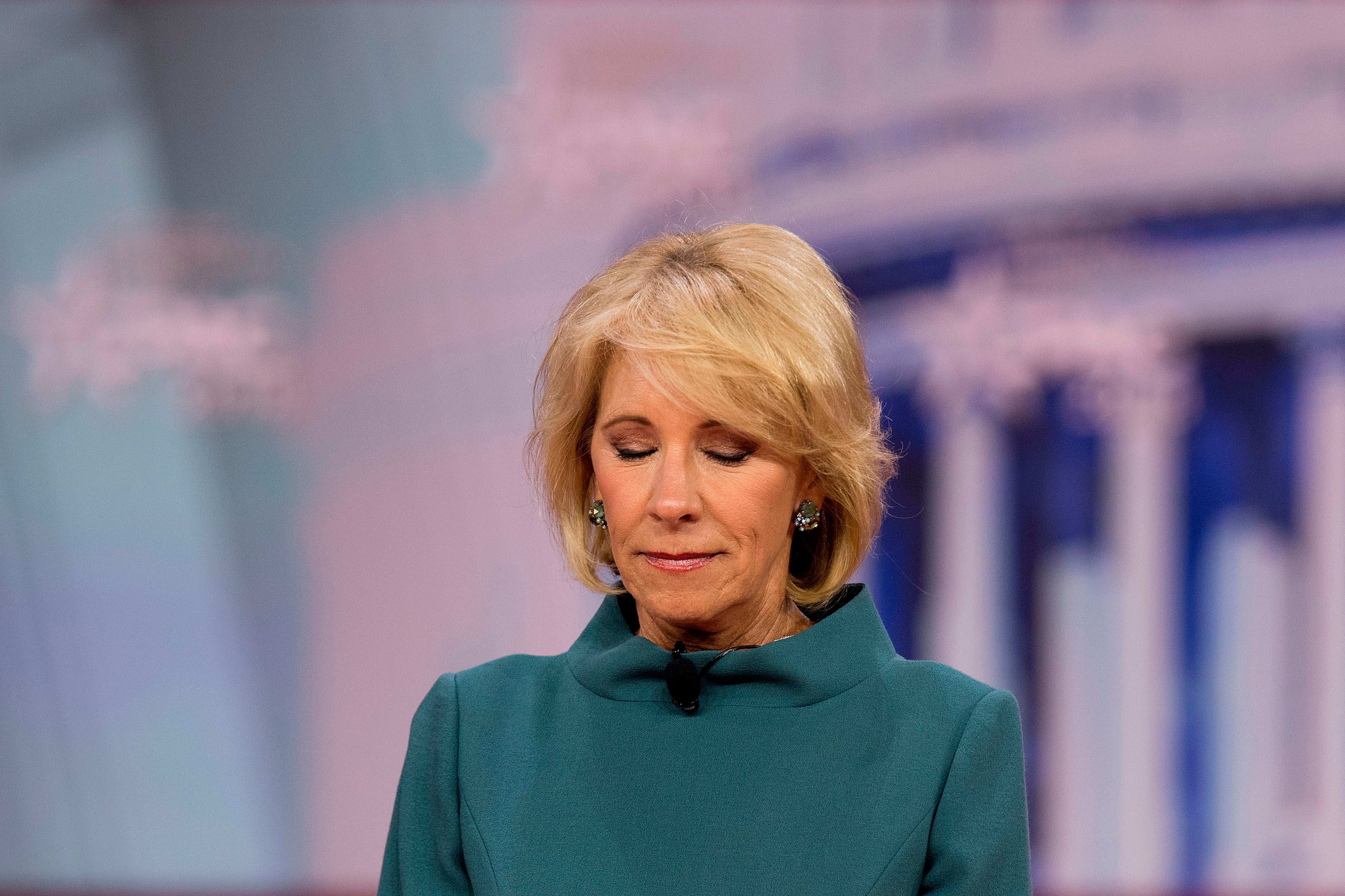 In her resignation letter, DeVos said the education department’s work would be marred by Trump’s recent actions.
