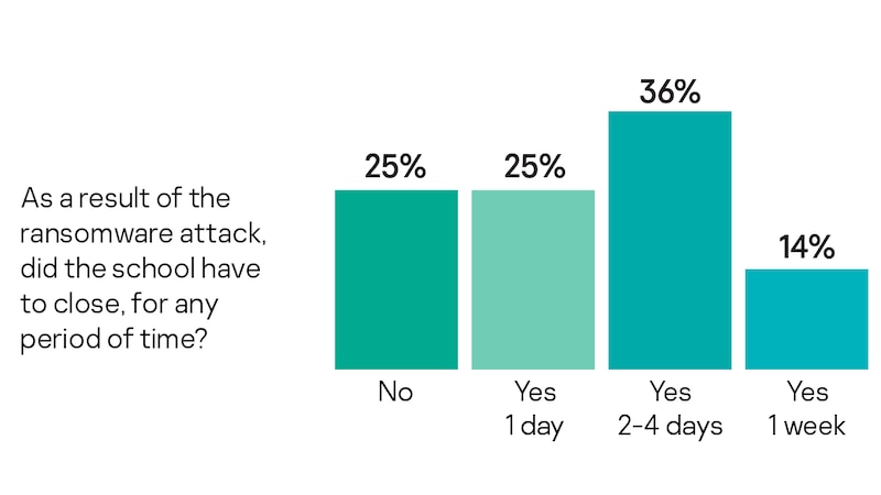 The attacks came with a cost beyond just ransom payments. More than 60% of parents who reported an attack said their child had personal data stolen in the incident. Sadly, this was the outcome that surveyed parents had said they fear the most. It’s a serious privacy issue that can get overshadowed by the large ransoms sometimes paid to attackers. As with any data breach, students’ passwords and other personal info can end up for sale on the dark web and be used for future criminal activity.