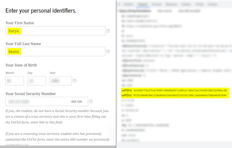 Federal student aid forms require a student to enter such information as their, and often their parents’ or guardians’, financial details. While The Markup does not have evidence that everything a student typed in was being collected, the pixel was configured to collect identifying information such as the student’s name, email address, phone number, and ZIP code, data that could be used for targeting ads on Facebook.