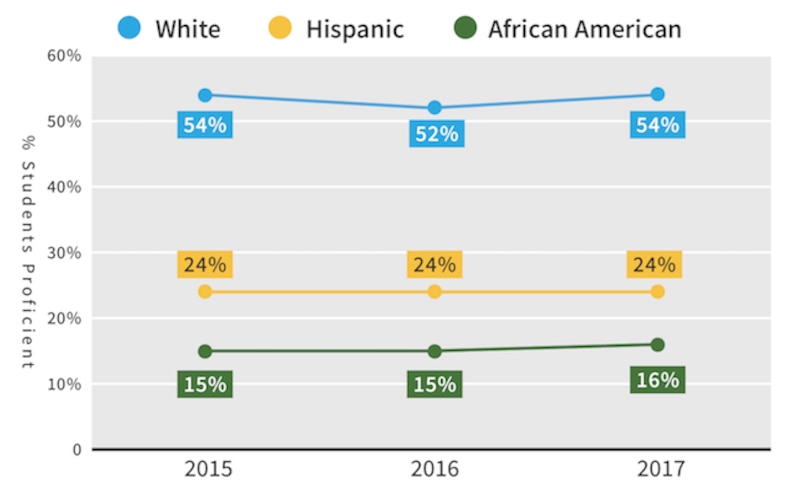 When Marshall was hired in 2012, he said he focused on creating an equity scorecard loaded with critical data that grades the district via four metrics: literacy, college-and-career readiness, school climate and culture, and discipline. He said the data has helped focus the community conversation and strengthened efforts to improve outcomes for certain students. For example: The district saw some increases in the number of low-income students considered to be college and career ready between 2013 and 2016.