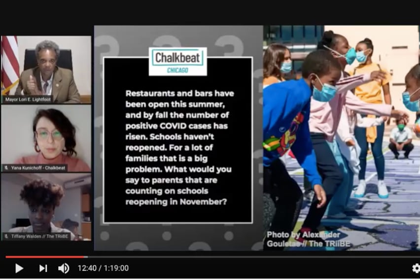 The mayor, who stressed a decision about schools was coming “relatively soon,” spoke Tuesday night at a Lens on Lightfoot virtual town hall organized by the Triibe and six other independent newsrooms, including Chalkbeat Chicago.