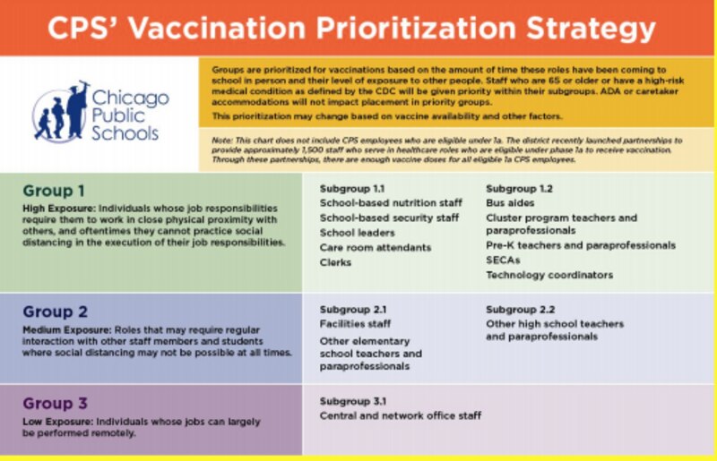 Chicago Public Schools said it will set up vaccination sites in four of its buildings across the city and train its school nurses to administer the shots to its almost 40,000 employees. Frontline employees who have been reporting to campuses since last year and older workers will get priority, officials said. But district CEO Janice Jackson stressed again that the district has no intention of pausing its reopening push until all teachers and other employees are vaccinated, as the district’s teachers union has demanded.