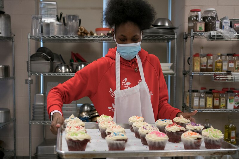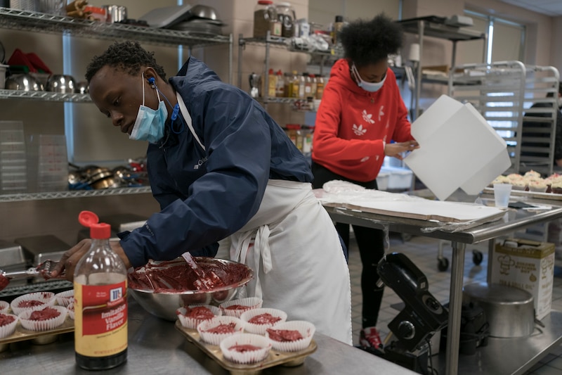 Now, in culinary arts class, Keshawn rushed to finish his batter as the bell rang. Soltis walked over to inspect the mixture.