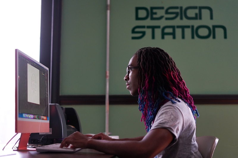 Although the classes taught in those labs are largely electives, the school is trying to help students who want to graduate fast by awarding core credits for that hands-on work. These efforts are still new and were disrupted by the pandemic, but Royster says the school has seen an uptick in the portion of graduates who have jobs lined up at graduation or go on to college. He wants students to be triple threats: prepared for college, careers, and entrepreneurship.