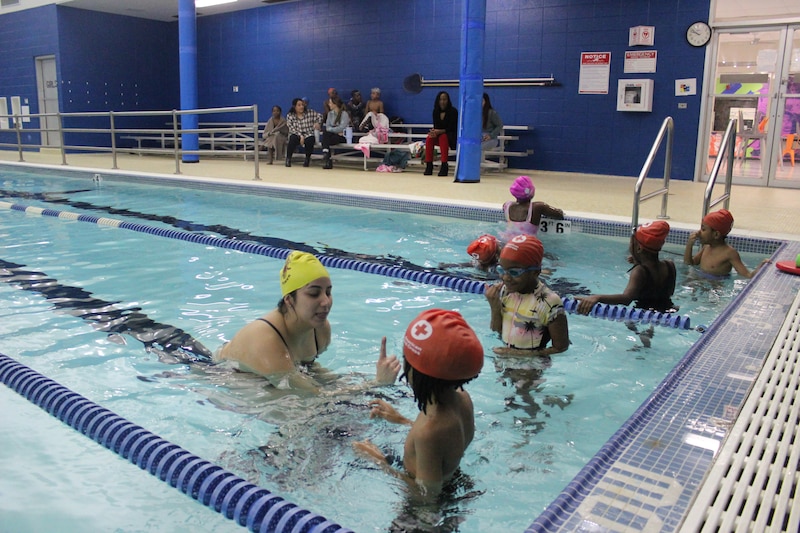 “We’re going to go over some pool rules,” Andrea Lopez, aquatics coordinator, said during the lessons last month. “Can you raise your hand and give me one pool rule?”