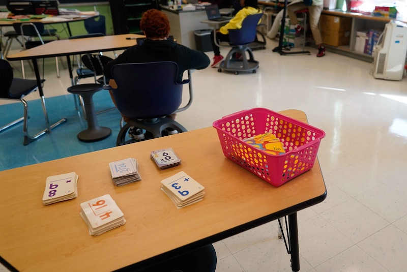 But, as district leaders have noted, a lot of intervention work is not captured by the data. At Brunson, a girl recently asked Przybyslawski for help with multiplication and division off the screens. The interventionist set up stacks of flashcards, quizzing her the old-fashioned way.