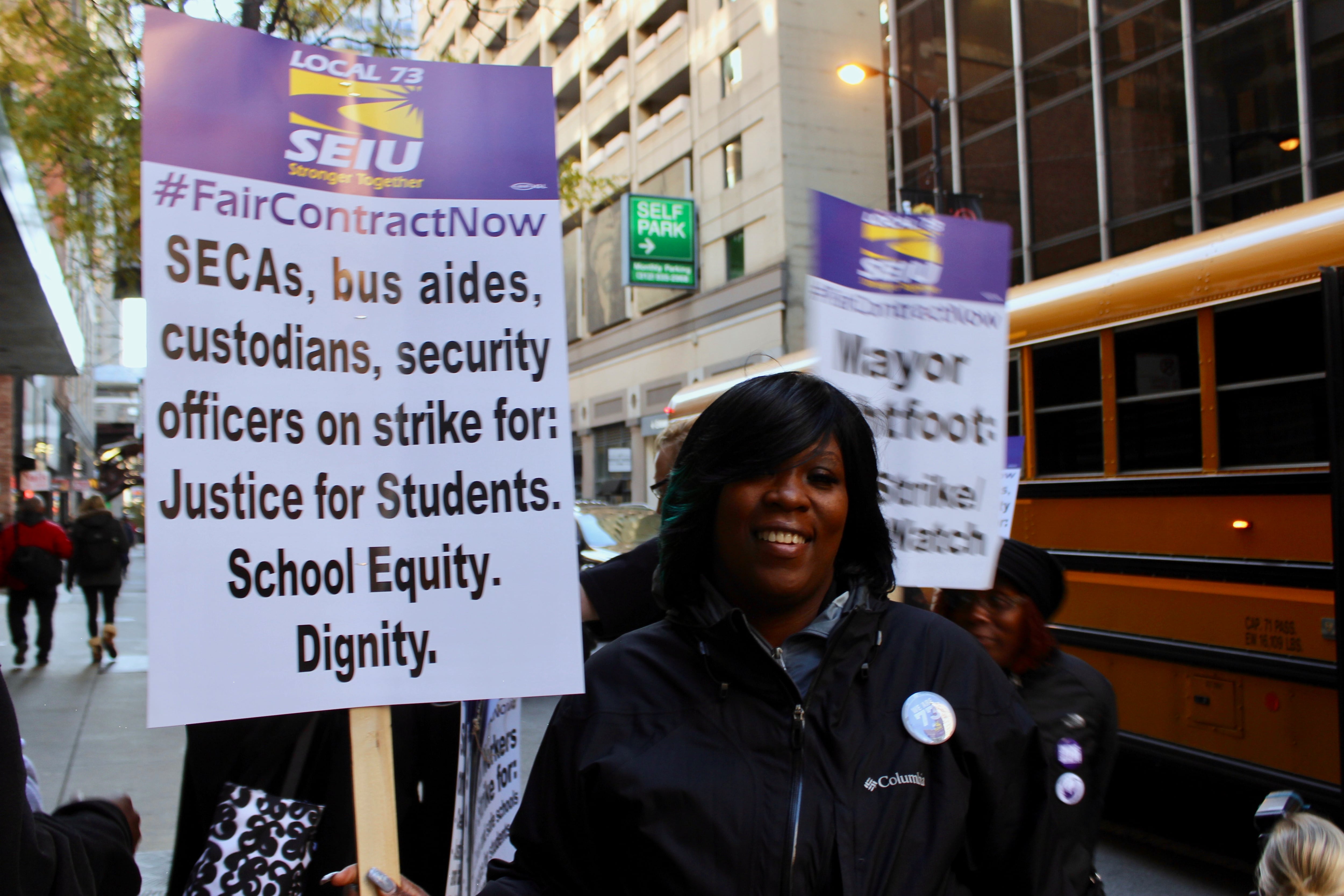 SEIU Local 73 represents about 11,000 school support workers, including custodians, special education classroom assistants, bus aides, security officers, crossing guards, and parent-workers. They have been working without a contract since June 30, 2023.