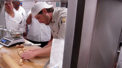 “Do the dinner rolls have to be round?” he asked. “Because, you know, you can do it a lot faster if you make them square.”