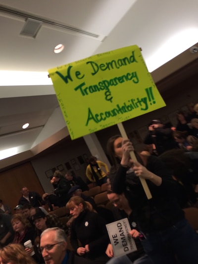 Despite an effort by board president Ken Witt to proceed to a discussion of the budget, the crowd reacted angrily.