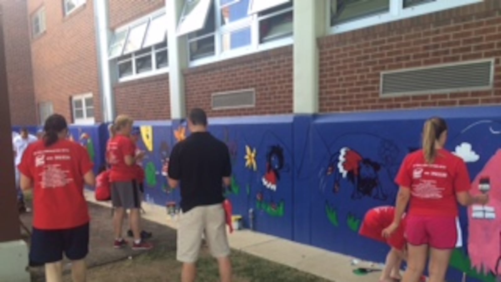 Volunteers were expected to work all day, painting railings, creating murals and building gardens at MSLA, while others did a cleanup at Val Verde. The Outreach to Teach team spruced up 16 classrooms, teacher lounges and six bathrooms. They also donated 50 bulletin boards, 25 staplers, 50 scissors, 30 sets of stencils and an array of other school supplies.