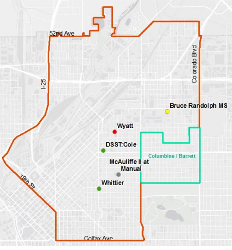 The schools in the new enrollment zone would be Bruce Randolph, Whittier K-8, Wyatt Academy K-8, DSST Cole and a new middle school based on the popular McAuliffe International School. A district proposal calls for it to be housed with the original McAuliffe in Park Hill next year and at Manual High School in Whittier starting in the fall of 2017.