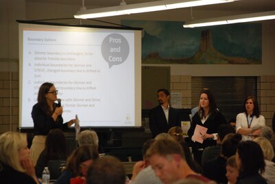 One of the options on the table includes automatically assigning some students to STRIVE Prep — Sunnyside, a charter school, instead of Skinner, the local district-run middle school, which district officials say is likely to become overcrowded.