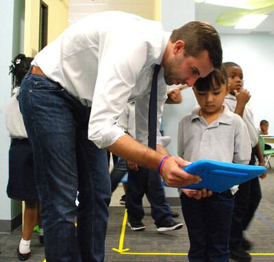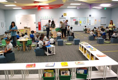 The scene—with 5- and 6-year-olds checking iPads and navigating along colored tape lines to get to their appointed stations—does appear to be a huge departure from the traditional school model. Students no longer have a single teacher, classroom or a standard sequence of lessons.