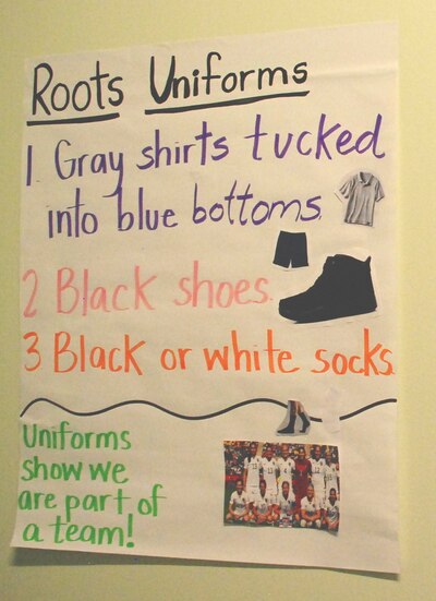 Given Hanover’s background, it’s not surprising that Roots is heavily influenced by certain high-profile charter sector practices. Examples include the school’s gray and blue uniforms, the way teachers address students as “scholars” and reminders for children to track the speaker.