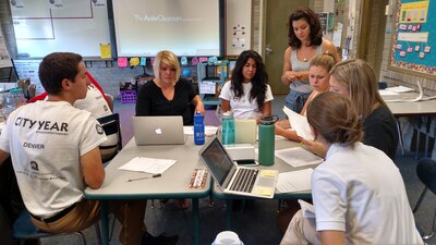 The City Year program, staffed by AmericaCorps personnel, provides after-school homework help.