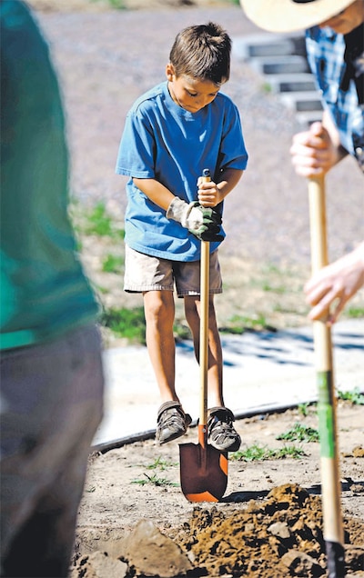 The younger kids attend classes in a decades-old DPS elementary school building, while the middle schoolers occupy a funky “cottage” built behind the playground. Each class has its own plot in the school’s one-acre garden.