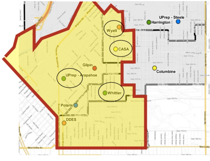 The proposal would create a permanent zone encompassing four schools: Whittier, Wyatt Academy, University Prep Arapahoe Street and Cole Arts and Science Academy.
