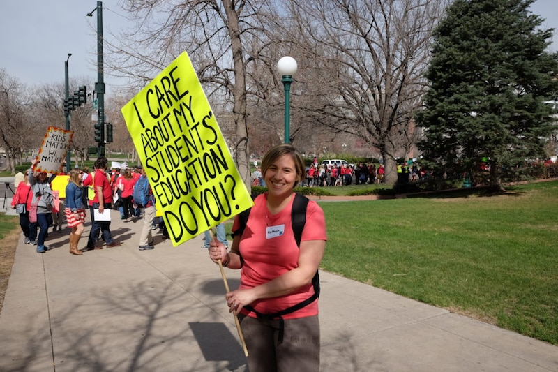 “There is a misunderstanding that we’re asking for pay raises,” she said. “This is 100 percent about making sure that our schools are funded. We deserve pay raises, but we’re here for our kids.”